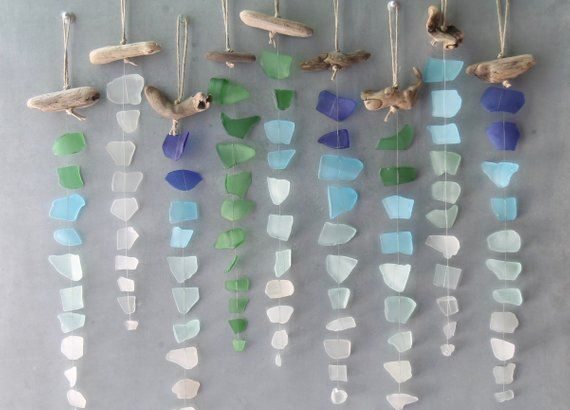 Add a little mood of color and beach to your world with this handmade sea glass sensor. Each piece of sea glass is carefully selected and tied by hand to create a delicate but durable mini mobile. Hang this cute little girl indoors or outdoors