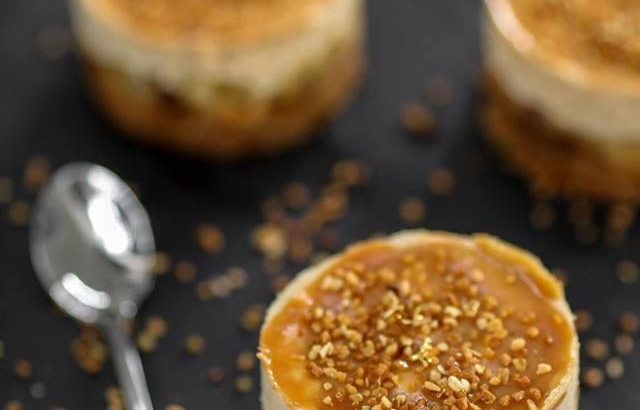 Dessert apples and caramel mousse on gingerbread Christmas mignardise